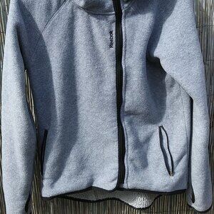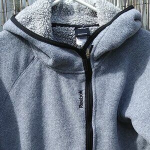Reebok Fleece Faux Sherpa-Lined Gray & Black Hooded Jacket - S