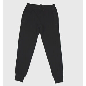 Reebok Fleece Sweatpants Joggers Men M Black Zip Pockets Tapered Ankle Zip Gym good used condition see photos for measurements