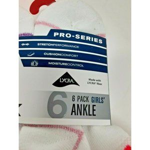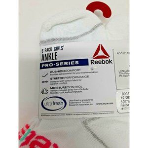 Reebok Girls Pro-Series Ankle Socks 6-Pack Size Small Fits Shoe Size 6 - 10.5