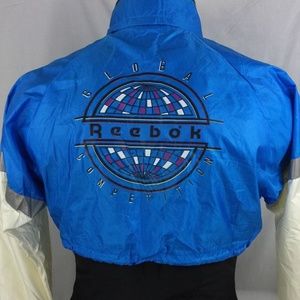 Reebok Global Competition Blue White Women's Light Jacket Nylon L Large