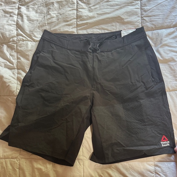 Graphite Reebok shorts with logo detail. Ideal for gym sessions.