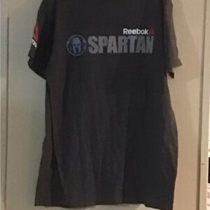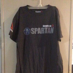 Reebok men's graphic T-shirt in size small. Gray color. Made from a cotton-polyester blend. Length: 26 inches. Pit to pit: 18 inches. J 6