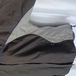 Reebok Gray blue Hooded Track Jacket Sz M Full Zip Windbreaker Pockets Vented