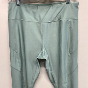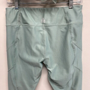 Reebok High Rise Performance Leggings Sage Green in size L. Excellent preowned condition. Hidden front pocket inside waistband, elastic waist. Please see photos for approximate measurements and details. Item may show difference in color based upon photography and perception. Photos are part of the description, as everyone’s level of condition may vary. From smoke free and pet free home. All packages are shipped the same or next business day.