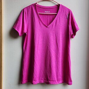 Reebok Hot Pink V-Neck Athletic T-Shirt Size Large