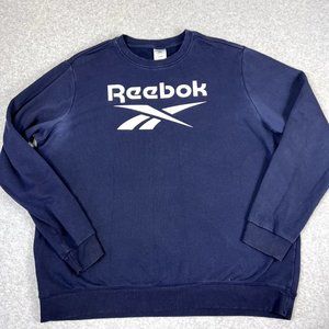 Reebok Identity Big Logo Crewneck Sweatshirt Mens Size 2XL Navy Blue Retro Style. Great pre owned condition. No holes or stains. Some fading present at armpits. See pictures for detailed condition.