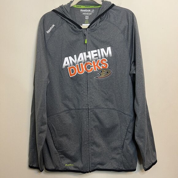 Reebok Jacket Mens Large NHL Anaheim Ducks Hooded Full Zip Center Ice Hockey