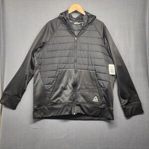 Reebok Jacket Mens XL Black Hybrid Hooded Full Zip Quilted Puffer Softshell NEW