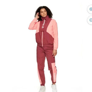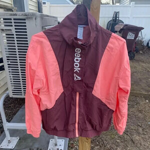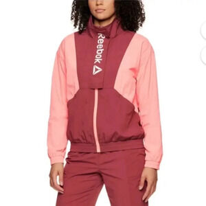 Reebok Jacket Womens Burgundy Pink Full Zip Mock Neck Athletic Windbreaker L