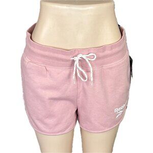 Reebok L Logo Pink Ribbed Drawstring Waist Pockets Relaxed Cotton Blend Shorts