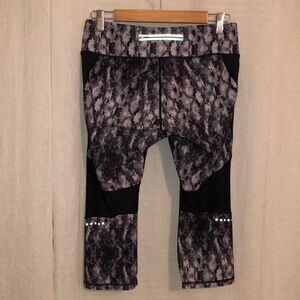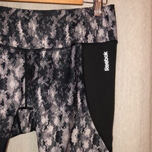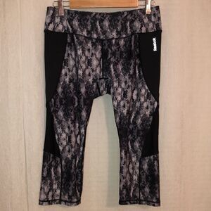 Reebok L Black Gray Light Reflective Crop Athletic Leggings