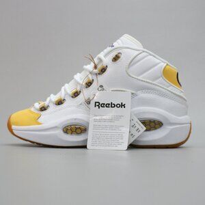 Reebok Ladies 6 Question Mid White Yellow Toe Basketball Shoes Sneakers FX4286