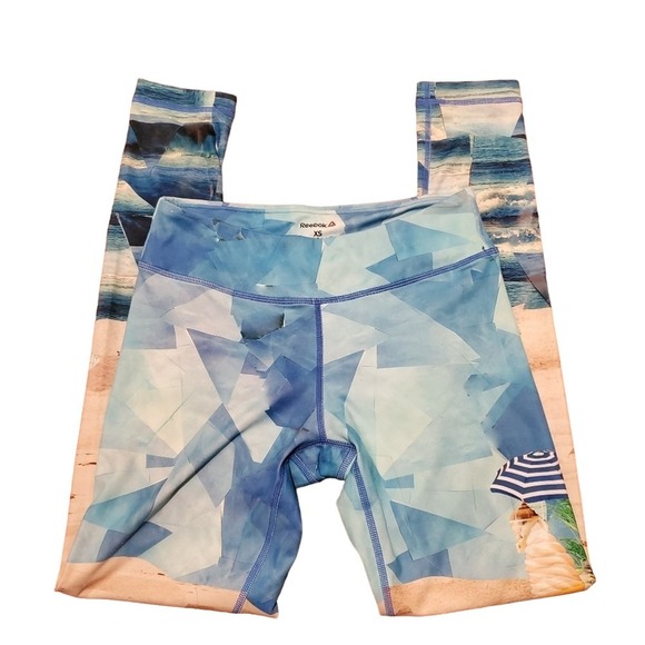 Reebok Leggings Womens Size XSmall Blue Ocean Theme Stretch Gym Yoga Beach