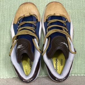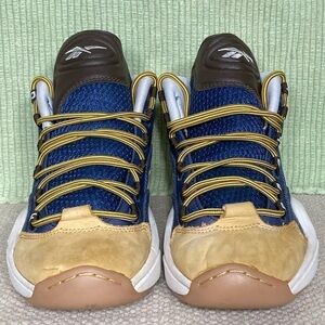 Reebok Mens Allen Iverson The Question Mid Dress Code Athletic Sneaker Shoes. Color: Blue/Tan. Pre-owned Condition - refer to pictures for description of shoes. No Rips or Tears. Smoke-Free.