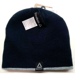 Reebok Men's Beanie Hat Gray Blue One Size Reversible Big Logo Knit Warm MSRP$30