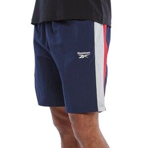 Reebok Men's Ivy League Regular-Fit Color blocked Crinkled Shorts Navy Red S