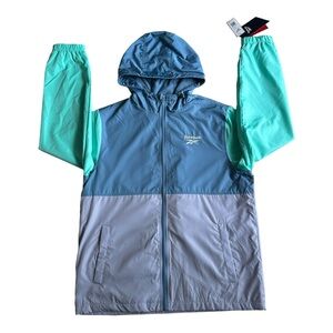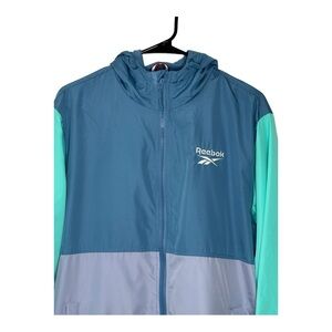 Reebok Mens Pastel Blue Fleece Windbreaker Full Zip Jacket Size Medium