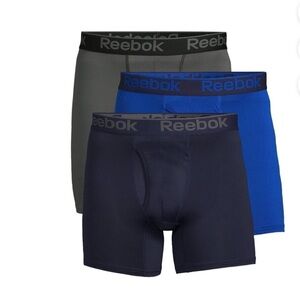 Reebok Men's 3-Pack Performance Boxer Briefs with Fly Pouch. Brand New in Box. Size Small (28-30). Cool & dry, anti-odor, stretch performance. Secure leg fit that won't ride up. Contour flap out for added support. Soft performance fabric for comfort and fit authentic Reebok logos pouch 100% polyester. 4092% polyester and 8% spandex. Machine washable.