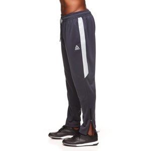Full Length Pants Two Side Pockets Drawstring Closure and Elastic Waistband Zipper at Bottom of Legs Reflective Logo on Hip Machine Washable Made of Polyester (100%)