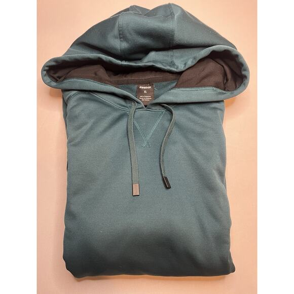 Reebok Men'sPullover Hoodie XL Teal Green Long Sleeve Power 3 Logo In Yellow