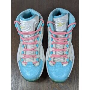 Reebok Mid Hi Top Sneakers Womens 7 Question GS M43195 White Pink Blue Retro