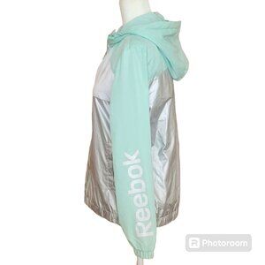 Reebok Mint/Metallic Hooded Fleece Lined Windbreaker Track Jacket