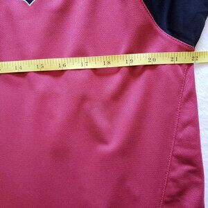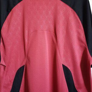 Colorblock design, embroidered branding/cardinal, partial button up, 100% polyester, great pre-owned condition