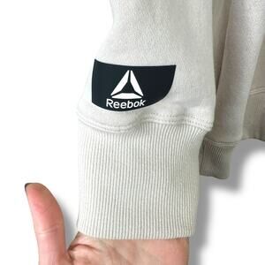 Reebok Light Tan Beige Crewneck Fleece Pullover Soft Logo Sweatshirt. Very soft material with some stretch.