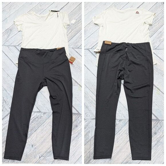 Reebok NWT XL White Active Tshirt and 1X Grey Skinny High Rise Leggings