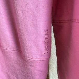 Worn twice, mint condition. Nice pink/lilac oversized pullover sweatshirt by Reebok sz: Large. Features oversized fit for a comfy feel, deep v-back, tunic length. No flaws.