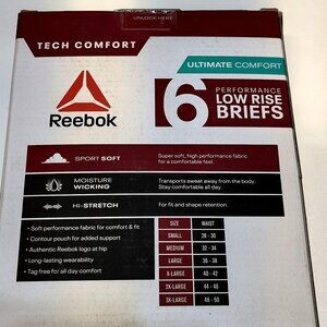 Reebok Performance Low Rise Briefs Men's 2XL 6-Pack Moisture Wicking Comfort NIB