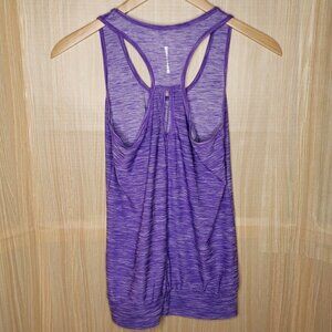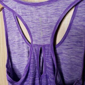 Women’s Reebok Performance purple long razorback tank top. Cute keyhole detail on back. Good condition! Measurements are: 28” from shoulder to hem, and 17” from armpit to armpit.