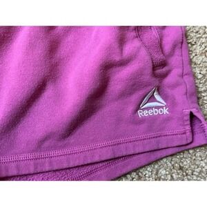 Comfortable athletic shorts in vibrant pink with elastic waistband and adjustable drawstring. Features side pockets and Reebok logo detail. Perfect for workouts, running, yoga, lounging at home, or casual summer wear. Made from soft, breathable fabric that wicks moisture. In excellent condition with no signs of wear, pilling, or fading.