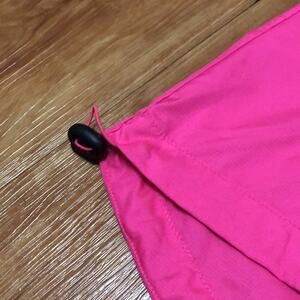 • Other information: High neckline. Long sleeves. Front zipper. Pockets. Cinched sleeves. Adjustable at the waist. Vented. Has the feel of a rain jacket. Color is a light bubble gum pink (sorry, my camera hates pink).