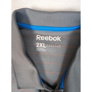 Reebok PlayDry Men Size 2XL Gray with Orange Pinstripes Athletic Short Sleeve Polo Shirt