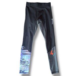 Reebok PlayIce Womens Leggings Sz Medium Black Compression Mesh Panel Athletic
