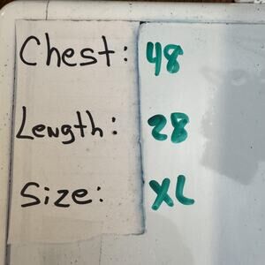 Flat Measurements: Chest: 48 in, Length: 28 in (see whiteboard photo)