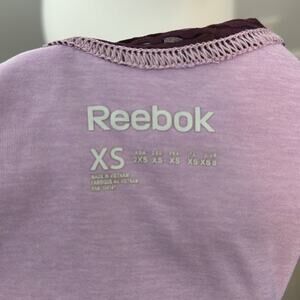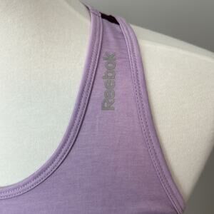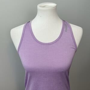 Reebok - Solid lavender / purple, racerback training tank top with a dark purple mesh rear. Reflective Reebok logo on the front left shoulder and reflective Speedwick logo on the rear left hem. Unlined and super lightweight. Women's XS