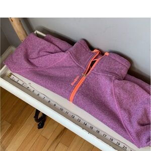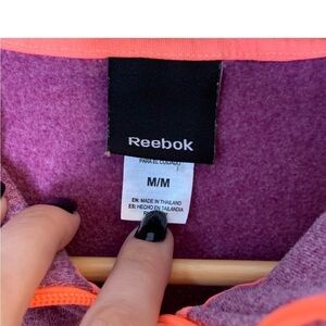 Reebok | Purple Orange Pullover Quarter Zip Kangaroo Pocket Contrast Stitch Sweatshirt in size Medium