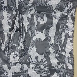 NWOT Reebok Quarter Zip Lightweight Windbreaker with Kangaroo Pocket and Velcro-Flap Pocket on Top of Kangaroo Pocket. Elasticized Hem and Arm Cuffs with Mock Neck in Annalise Gray Camo Print. 100% Polyester with Mesh Inside.