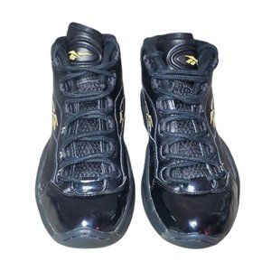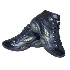 Reebok Question Black Gold V48588 Basketball Allen Iverson Hexalite Size 5.5/ size 7 in women. No flaws, just normal wear. Feels Amazing on feet! Comes from a pet and smoke free home. Thank you for checking out this listing. Also, check out my other listings for more great deals!!