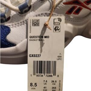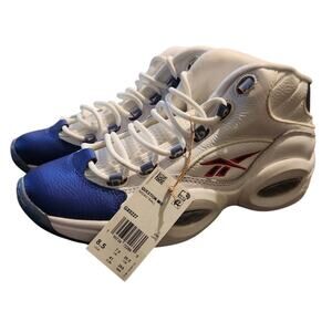 Step up your sneaker game with these Reebok Question Mid Blue Toe GX0227 Allen Iverson shoes! These stylish sneakers are in excellent condition and ready to turn heads. A must-have for any sneakerhead or Iverson fan.