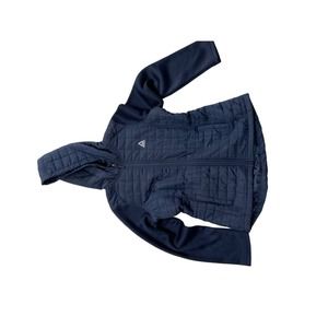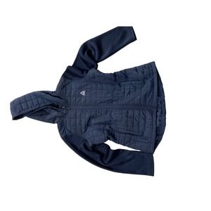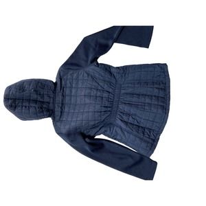 Embrace the changing seasons with the Reebok Quilted Knit Blue Jacket, tailored for Women’s Size Medium. This versatile coat is designed to shield you from the cold and keep you warm and cozy with its full zip closure, hood for extra protection, and comfortable knit sleeves with a quilted shell. The jacket features 2 front pockets, adding both style and functionality. Crafted with care from 100% polyester, this machine-washable jacket ensures easy maintenance, and a great value with a MSRP of $145. Elevate your outerwear collection with this Reebok jacket – a perfect blend of fashion and function for the woman on the go.