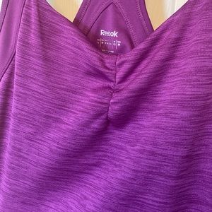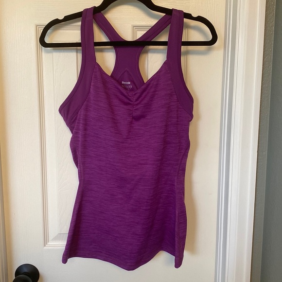 Like new (never worn) Reebok Racerback. Very fitted, fits like a small. Built in bra.