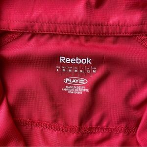 Stylish red windbreaker jacket by Reebok. Perfect for outdoor activities.