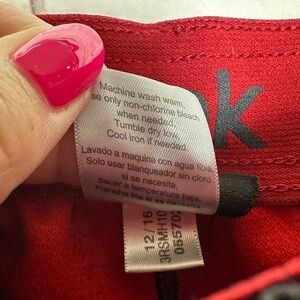 waist flat 14", outseam 19.5", inseam 9", inside drawstring, side slit pockets, great used condition