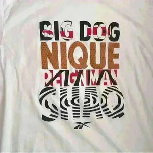 Features Reebok basketball athletes with signature collections. Shaq, Reignman, Nique, and Big Dog - Shaquille O’Neal, Shawn Kemp, Dominique Wilkins, Glenn Robinson. Never worn. No holes, stains or tears. Graphic in good condition.