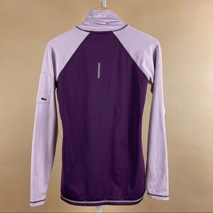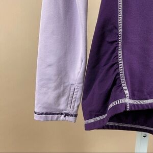 Soft pullover dri fit style running top. Turtleneck/mock neck collar. Gathered sides for flattering fit. Thumb holes on sleeves. Pastel and deep purple. In great condition!