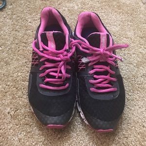 running shoes feature multi-directional nodes to help promote natural motion with an ultra-comfortable ride. In black/pink.