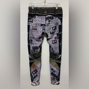 Reebok Speedwick Lux Bold Baroque Print Leggings •Large •Cassette Tape Music